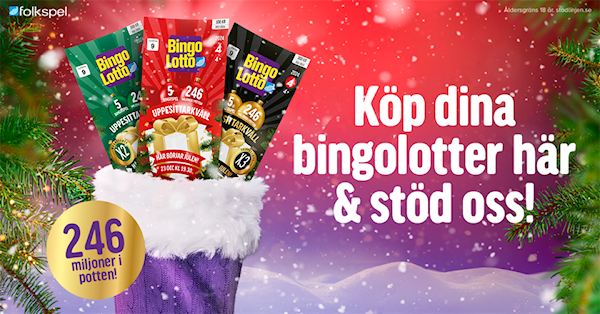 Hela Sveriges julfirande börjar med Uppesittarkvällen! Vi säljer lotter till Bingolottos uppesittarkväll och de finns att köpa på ICA Nyckeln i Hillerstorp eller så går det bra att kontakta Uffe på 0707763891.